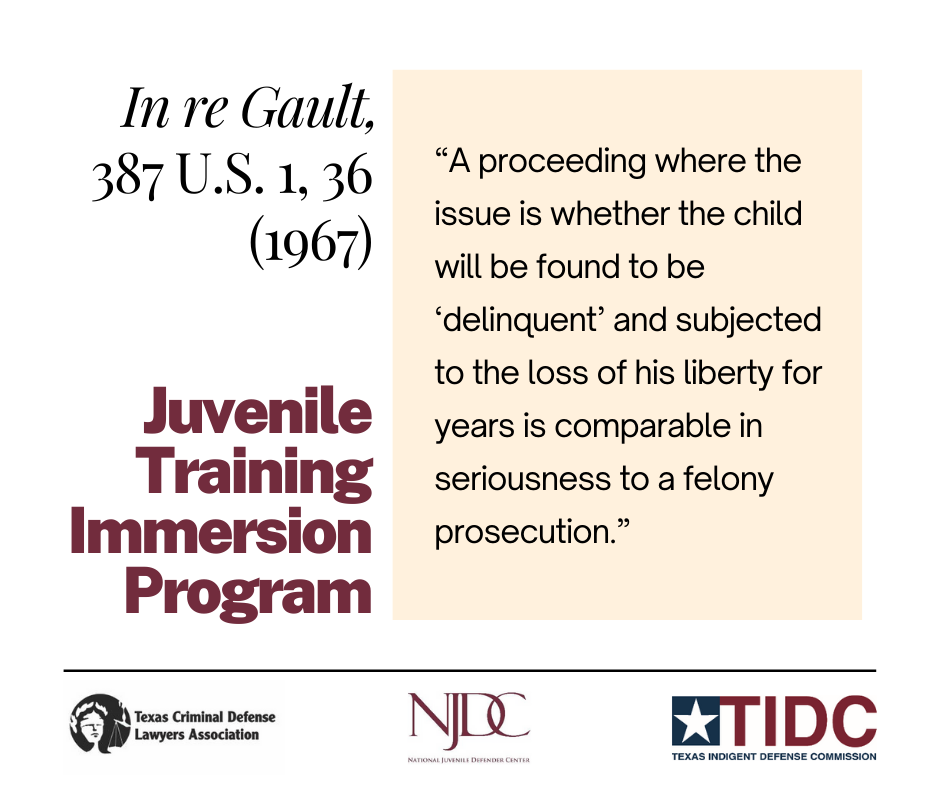 Join us in taking Texas Juvenile Defense to the next level. TCDLA has partnered with the National Juvenile Training Center and the Texas Indigent Defense Commission to bring cutting edge juvenile defense practice to Texas. During the next year we will be holding regional seminars free for juvenile law practitioners. Registration opens soon!